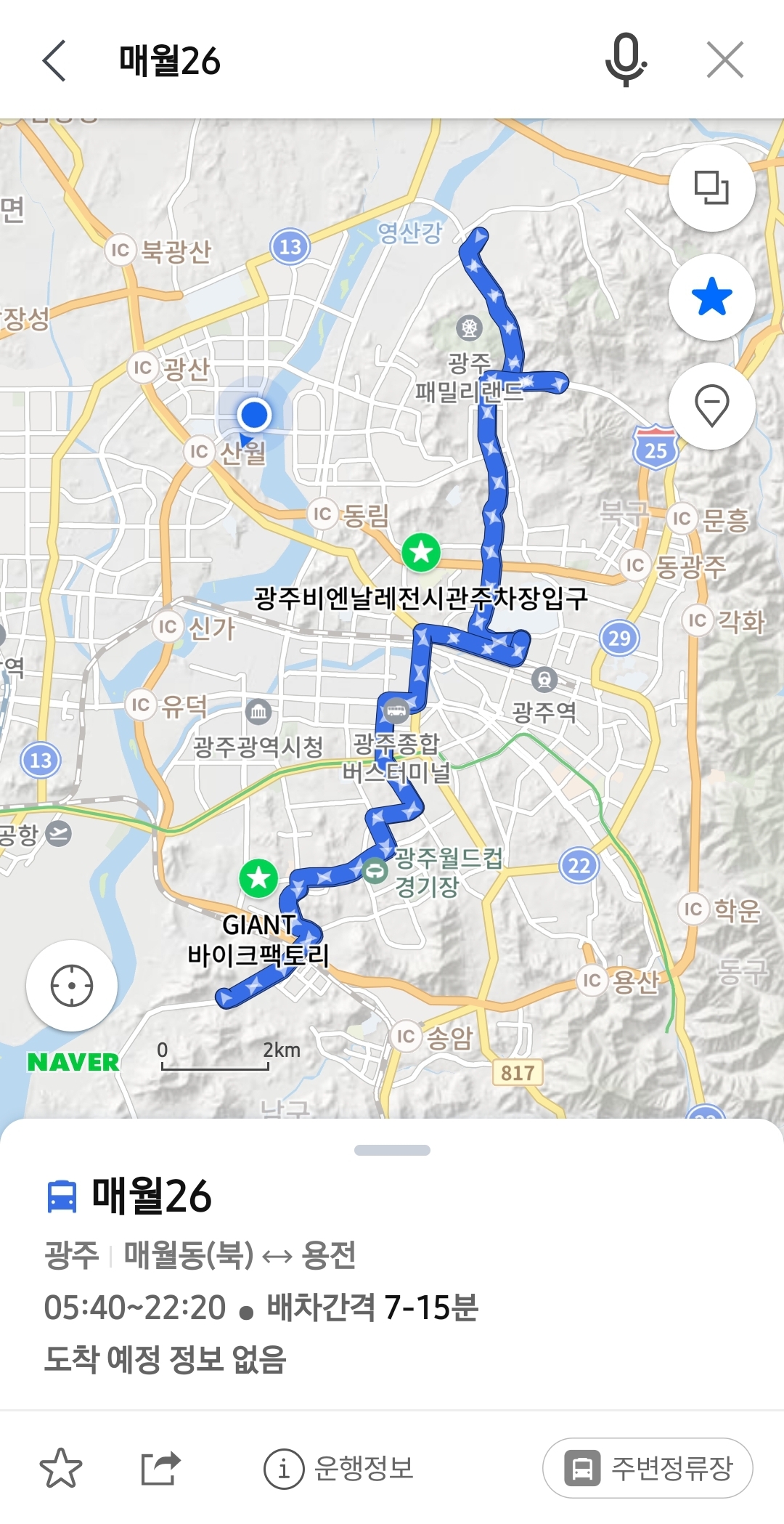 - 네이버 지도어플에서 버스번호 입력 후 검색