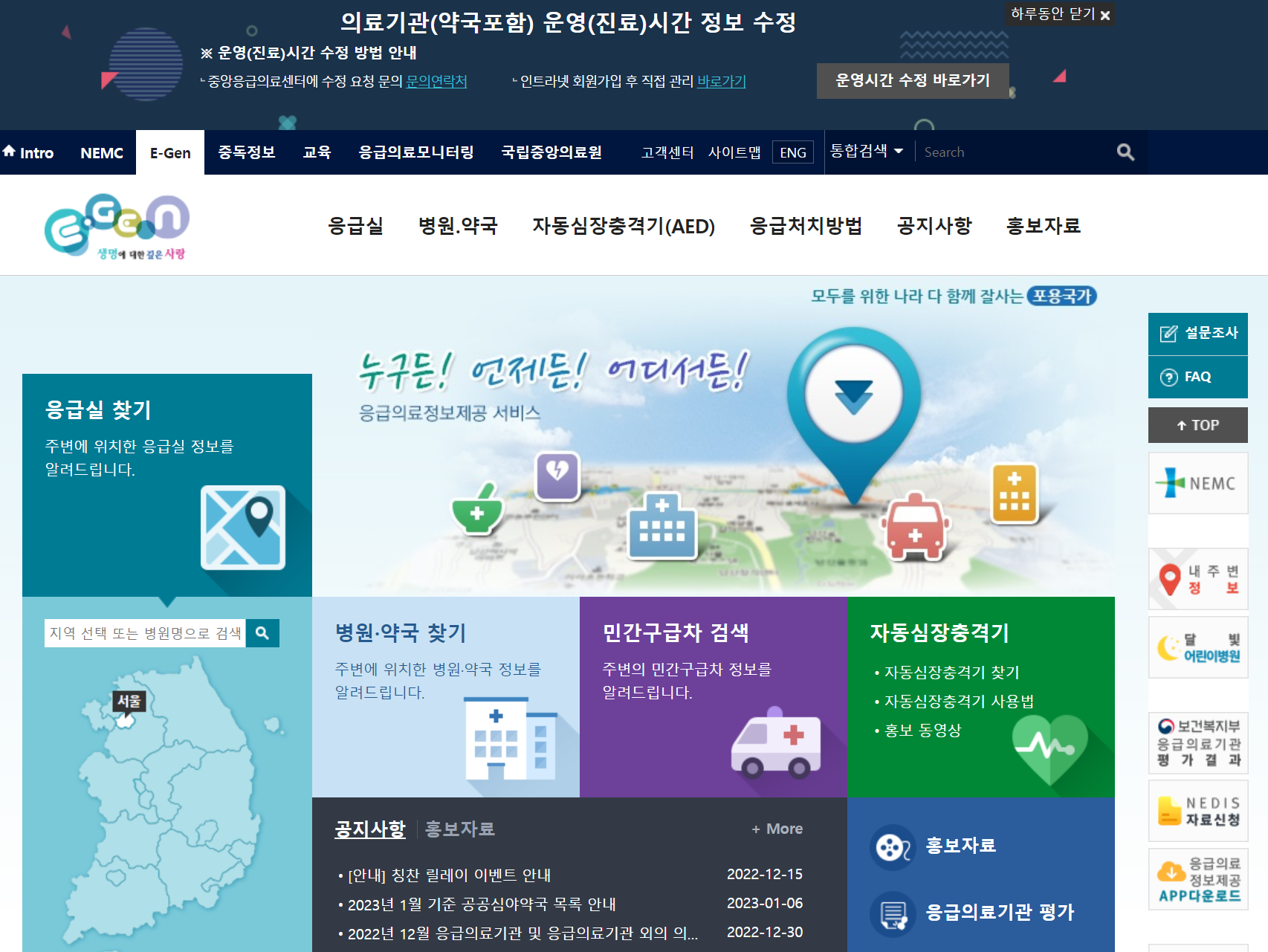 2. 응급의료포털 사이트(www.e-gen.or.kr)에서 확인하기