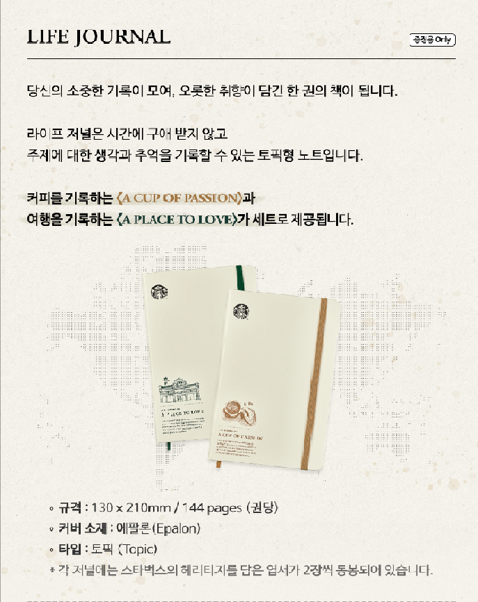 커피를 기록하는 A Cup of Passion 과 여행을 기록하는 A Place to Love 가 세트로 제공