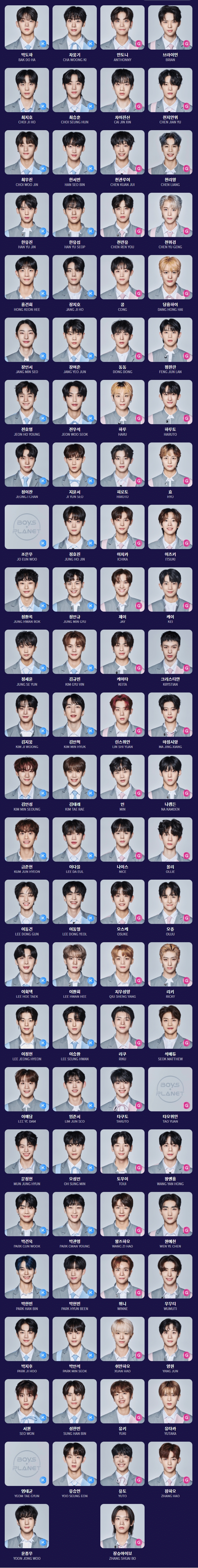 K가 한국인, G는 중국인 or 일본인 참가자들(사진 없는 사람들은 퇴소자들)